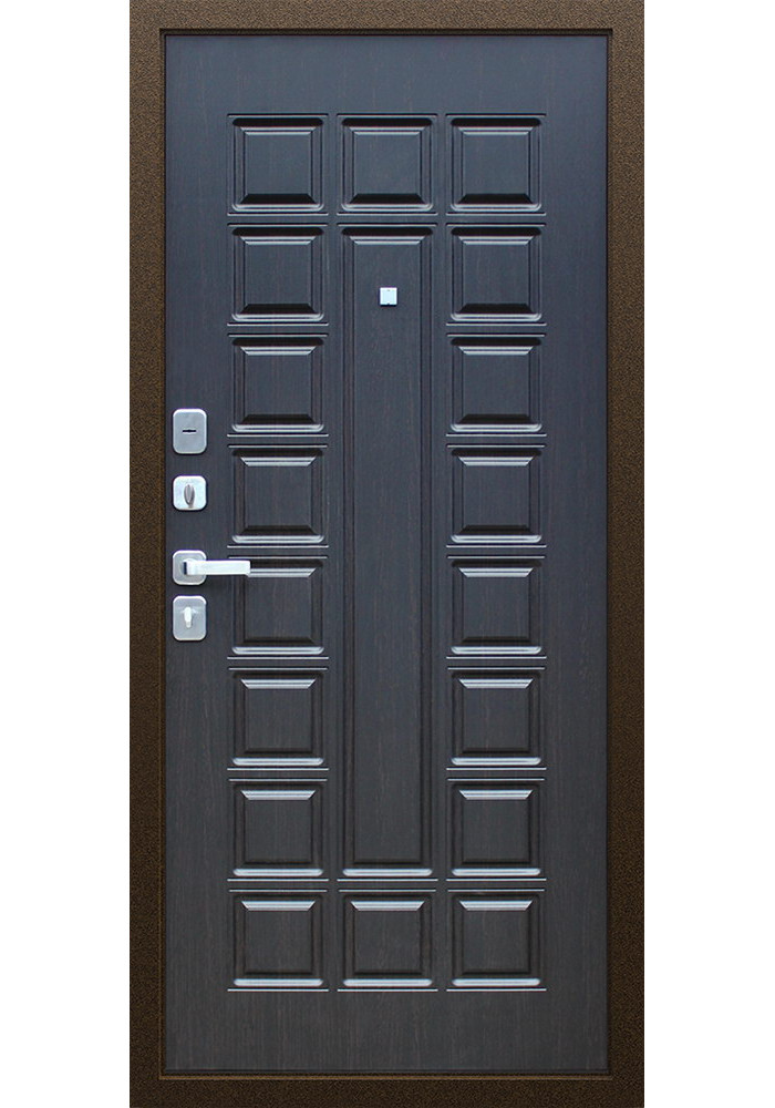 - Наружный лист металла: Лист металла – 1,5 мм. Порошковое покрытие. Фигурный наличник.